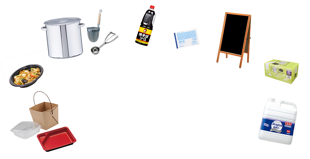 約6000種類のアイテムが揃っています。店舗から食品工場まで様々な用途の商品が可能。備品購入の支払いも一箇所でまとまるので、経理も簡単!
